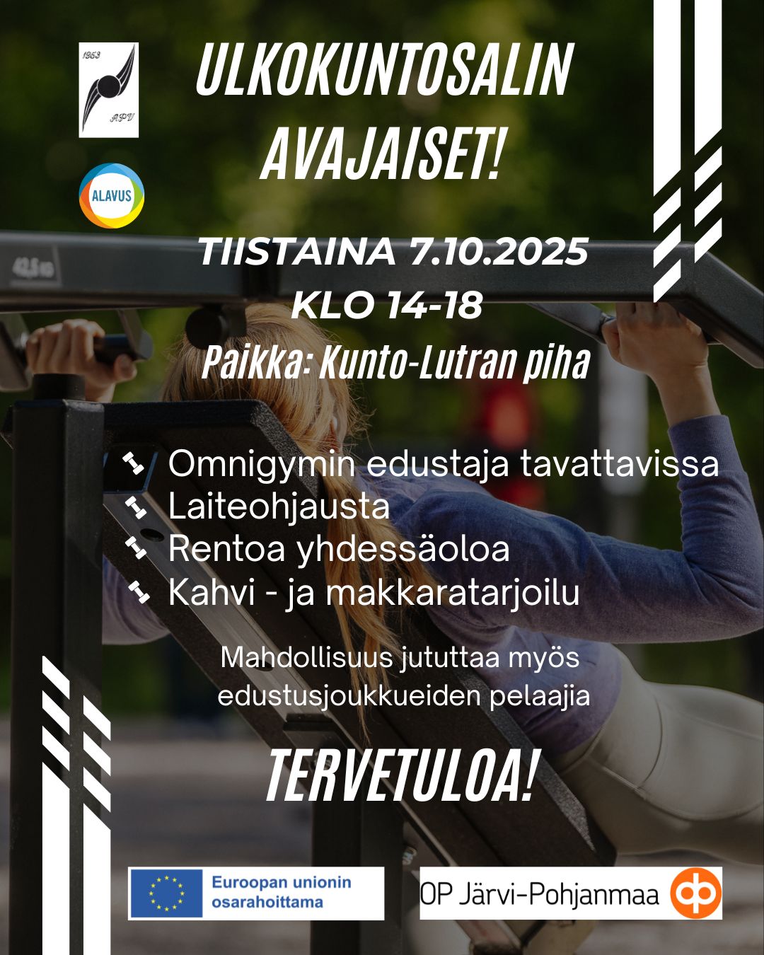 APV:n uuden ulkokuntosalin avajaiset ti 7.10. Kunto-Lutran piha-alueella klo 14-18